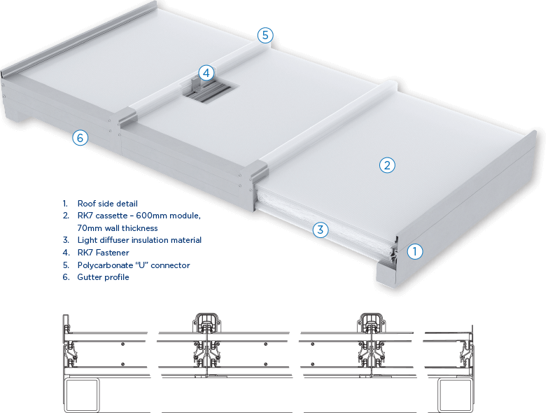 Danpatherm RK7, el exclusivo sistema de cubierta de doble acristalamiento, redefine los límites de lo posible en el mundo de las cubiertas. Diseñado para crear el ambiente ideal con una perfecta combinación de luz, sombra y acústica, este nuevo sistema de cubierta ofrece una transmisión de luz, un rendimiento térmico y un aislamiento acústico excepcionales, además de una gran capacidad de cobertura.